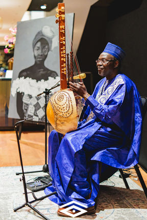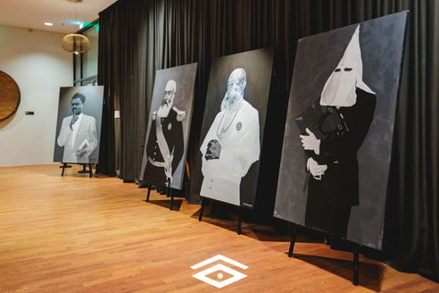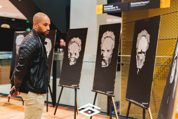 Immerse yourself in the captivating world of David Katshiunga's mesmerizing black and white paintings. These artistic masterpieces facilitate a captivating dialogue that transcends time, seamlessly connecting the past with the present.